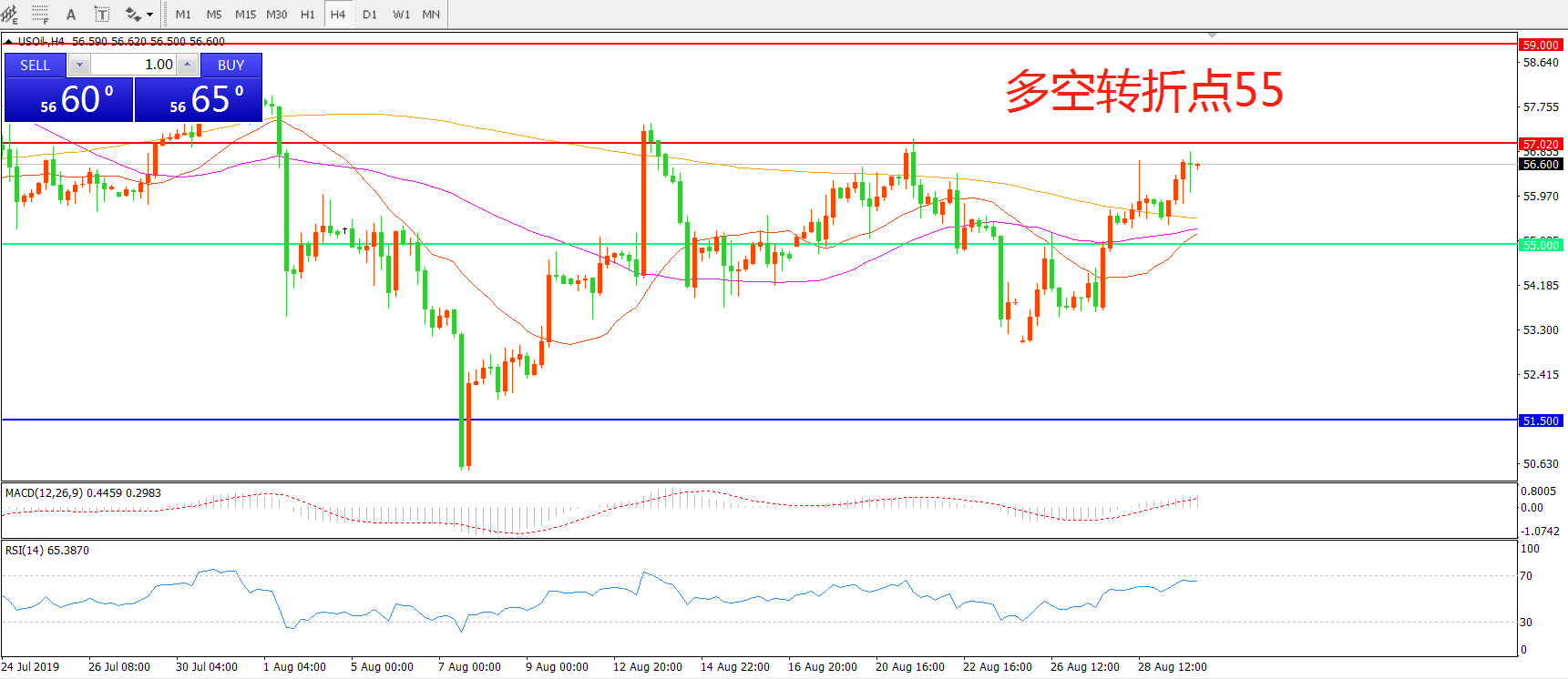 中美双方相互加征关税,使得市场的担忧情绪骤然升温。不过,中国商务部证实中美讨论9月磋商事宜缓解了市场紧张情绪,使得风险情绪有所回升。同时EIA原油库存大降的利多影响持续发酵,美国WTI原油周四(8月28日)收涨1.7%,报56.61美元/桶。