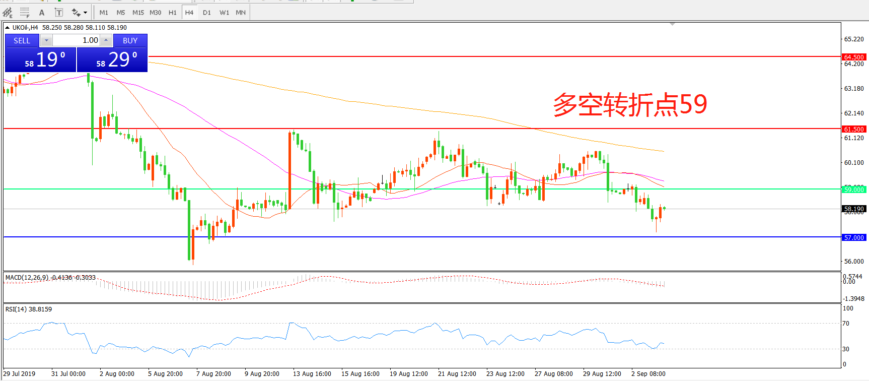交易策略:在59.00之下看跌,目标57.00 53.00