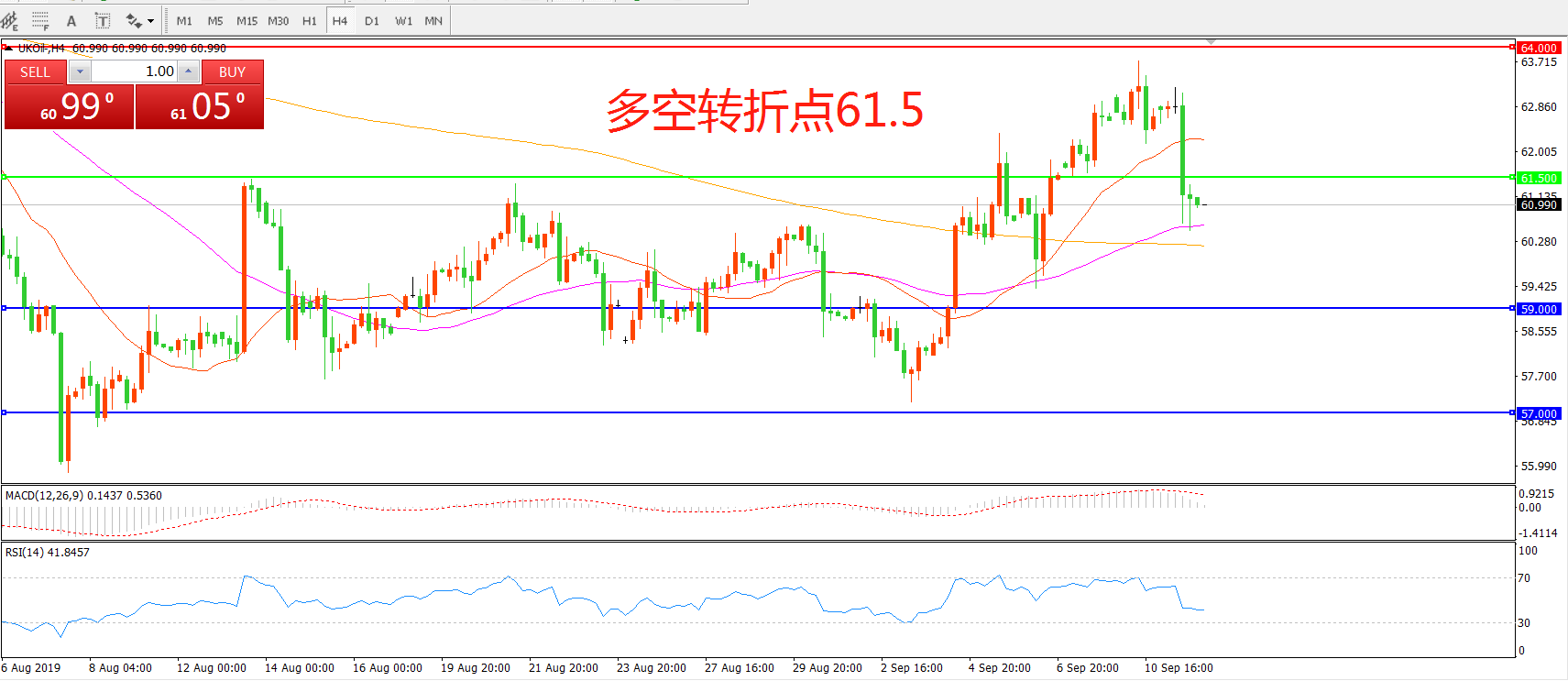 美国能源信息署(EIA)周三(9月11日)公布报告显示,截至9月6日当周,美国原油库存减少691.2万桶至4.161亿桶,远高于预期的减少248.8万桶,利好油价。但石油输出国组织(OPEC)周三公布最新月报显示,连续两个月下调原油需求增长预期且美国总统特朗普考虑放宽对伊朗制裁的令原油供应有望上升,布油高台跳水,最终收报60.99美元/桶。