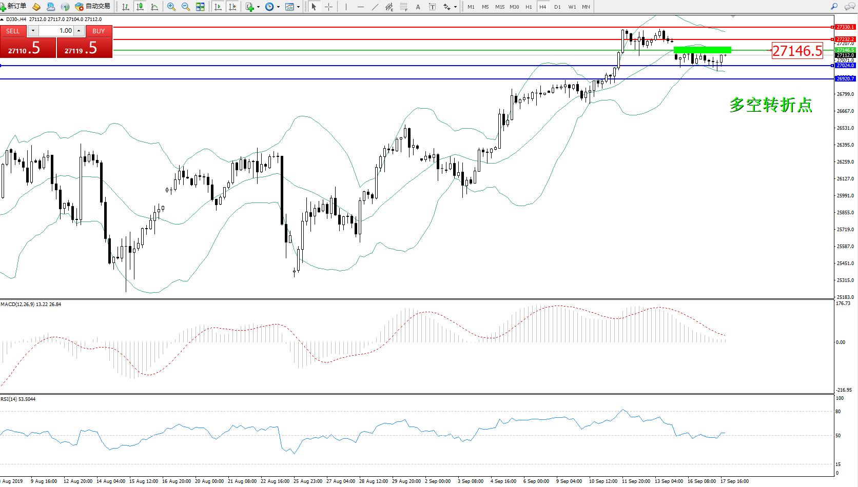 道琼斯指数917日(周二)收盘上涨32.20点,涨幅0.12%,报27109.03点。美国股市小幅收高,周末沙特阿拉伯最大炼油厂遭袭的影响消退,三大指数在盘中大部分时间涨跌互现,收盘时稳站在平盘之上,扳回周一的部份跌幅;美联储今日晚间结束为期两天的政策会议,预计将降息25个基点,为今年第二次降息。投资者还将等待美国货币政策将放宽到何种程度的线索,因美联储决策者对是否有必要进一步降息存在严重分歧。投资者等待美联储对未来货币政策立场的进一步指引。