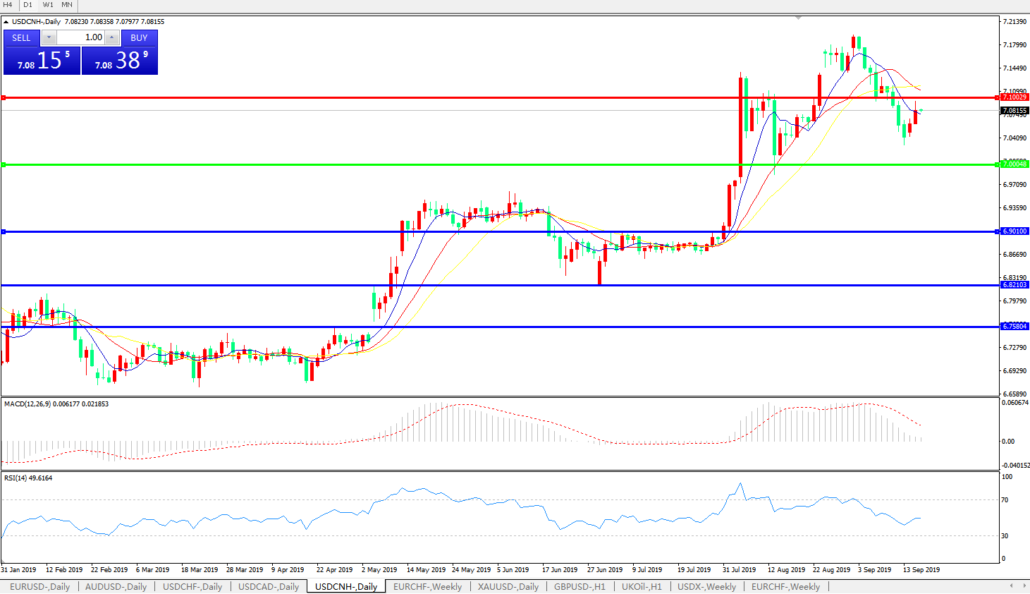 备选策略: 在7.0000之下,看跌,目标价位为6.9010,然后为6.8210。