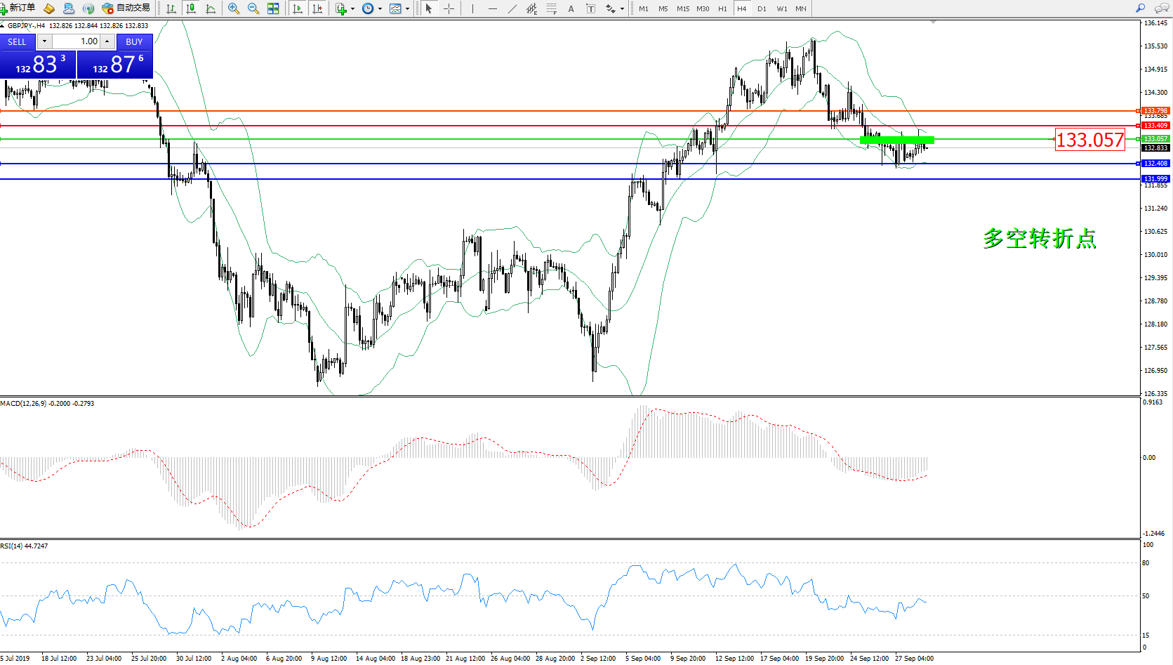 交易策略:133.057下方看跌,目标132.408131.999