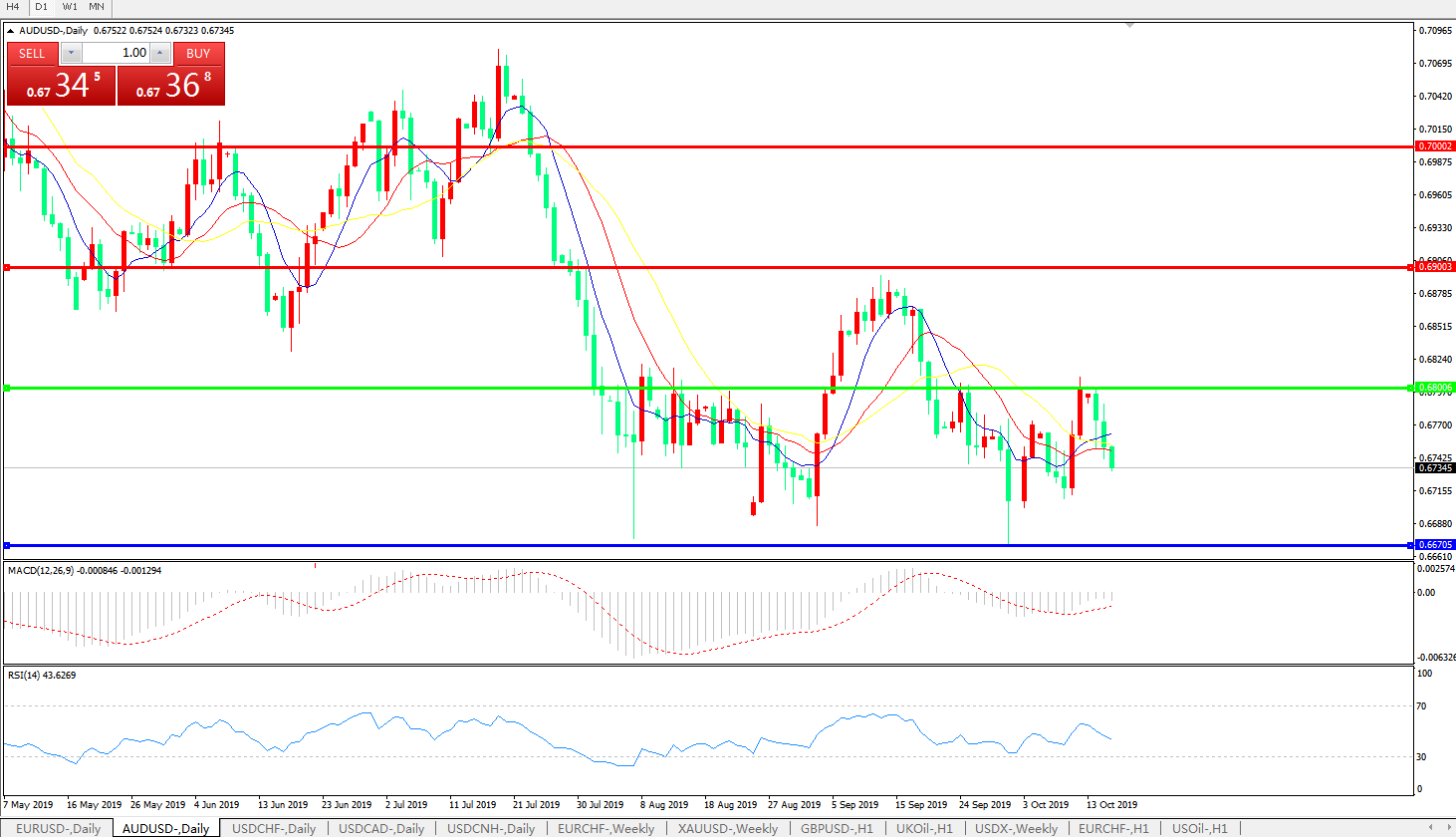 澳元兑美元在周二日内陷于窄幅盘整,波动率相比此前显著下降,显示谨慎情绪已经重新主导了交易抉择,投资者在后市仍将观望进一步的消息面事件变化,来研判进一步走势方向;此前,澳元汇价一度因为贸易领域的过度乐观情绪降温,而在周一亚欧时段强力回吐上周以来的涨幅,不过在进入北美时段后,消息面的重新回暖再度带动汇价企稳;投资者对全球贸易前景目前持有审慎乐观态度,这和货币政策宽松的预期影响相互抵消,令澳元汇价或在短期内仍陷于底部盘整区间; 这意味着澳元汇价此后仍会在底部区间中盘整,上方初步阻力位在前期高点0.6818,下方在0.6670-80区间则有着双重底支撑,直到有更强力的决定性消息出炉后,汇价才有望彻底脱离当前盘整箱体。