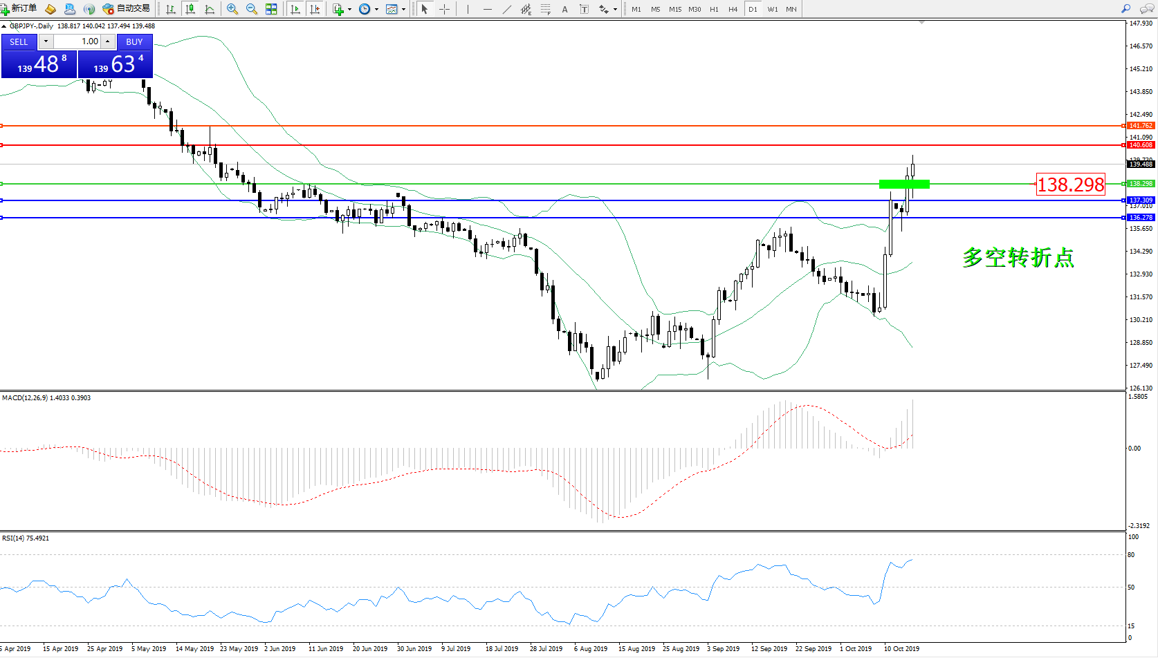交易策略:138.298上方看涨,目标140.608141.762