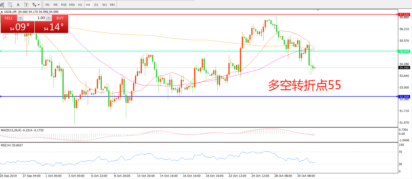 交易策略:在55.00之下看跌,目标52.50    50.00