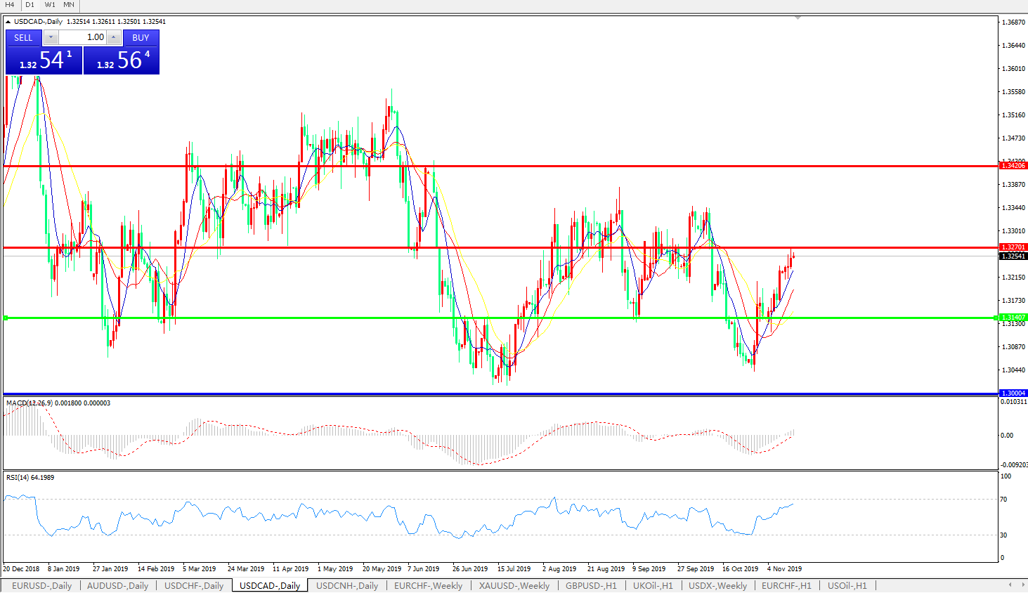 美元兑加元USDCAD 日线图: