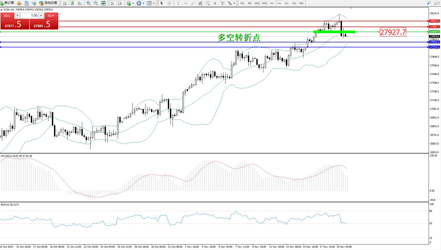 道琼斯指数11月19日(周二)收盘下跌102.20点,跌幅0.36%,报27933.98点。美国10月房屋建筑有所反弹,10月营建许可总数跳升至逾12年高位,显示房屋市场在抵押贷款利率下降的情况下表现强劲;美国国债在美国早盘时段攀升,并将涨势保持到了收盘,有关贸易谈判和石油抛售的消息影响市场风险偏好。国民意调查机构拉斯穆森报告的民调结果显示,仅18%的美国人认为美国总统特朗普将在其第一个总统任期结束前遭到弹劾。