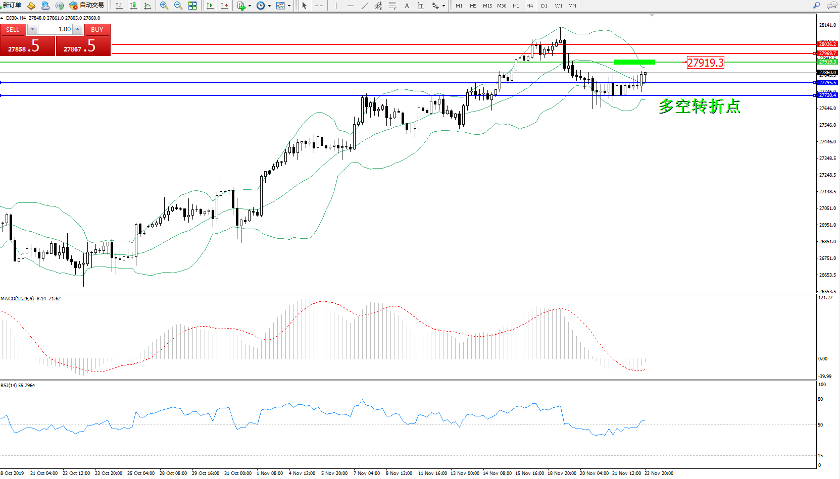 道琼斯指数11月22日(周五)收盘上涨109.30点,涨幅0.39%,报27875.62点。美国公布的采购经理指数初值和消费者信心数据超过预期,而英国和欧洲部分地区的类似数据则表现不如美国。一周的消息喜忧参半,抑制了波动性,并将股票维持在距离历史高点不到1%的窄幅范围内。富时罗素表示,股市短期依然看贸易谈判,鉴于这方面没有什么实质性内容,所以不奇怪股市窄幅波动、波动率处于多月低点。