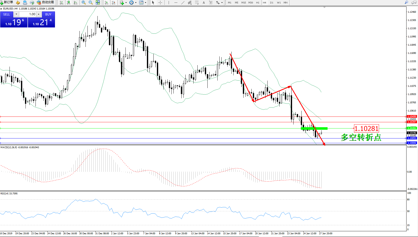 交易策略:1.10281下方看跌,目标1.10093、1.10006