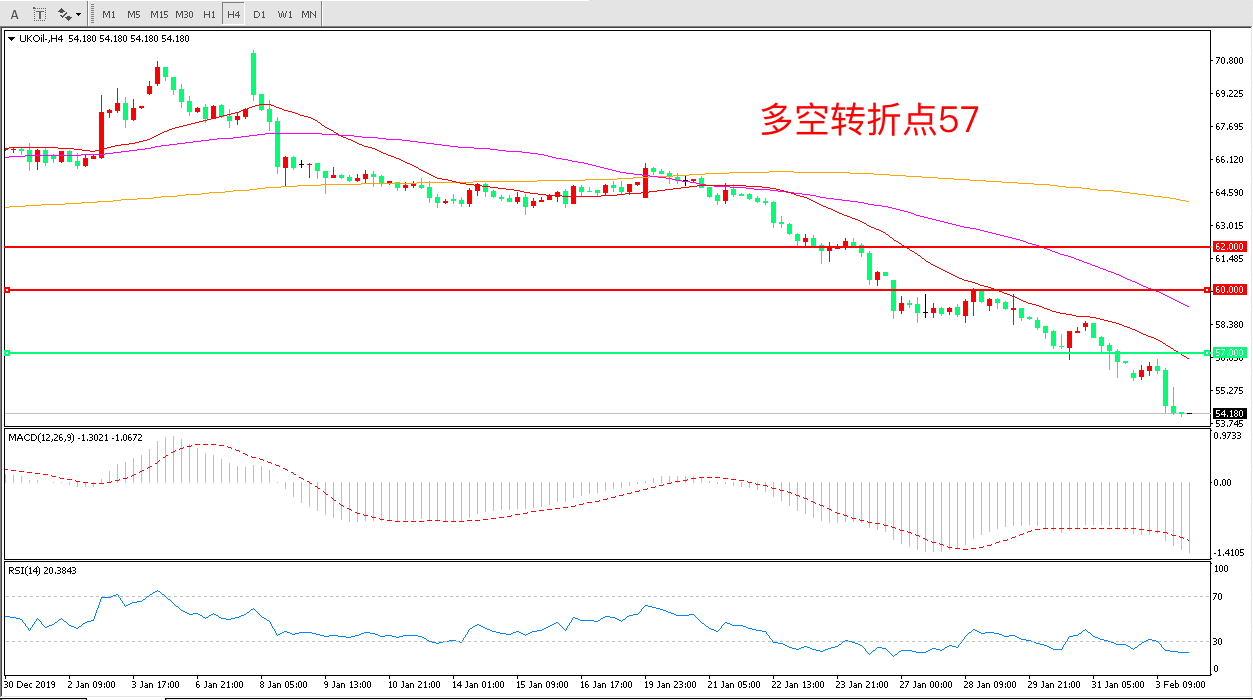 交易策略:在57.00 之下看跌,目标55.00    52.00