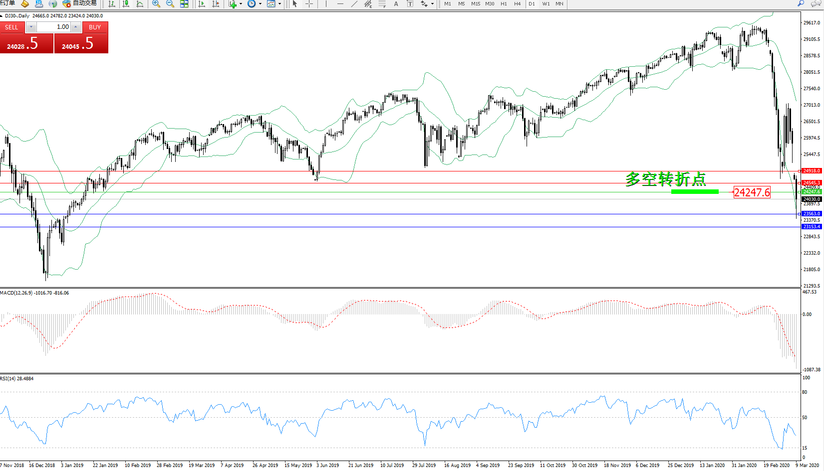 道琼斯指数DJ30—— 日K线图显示: