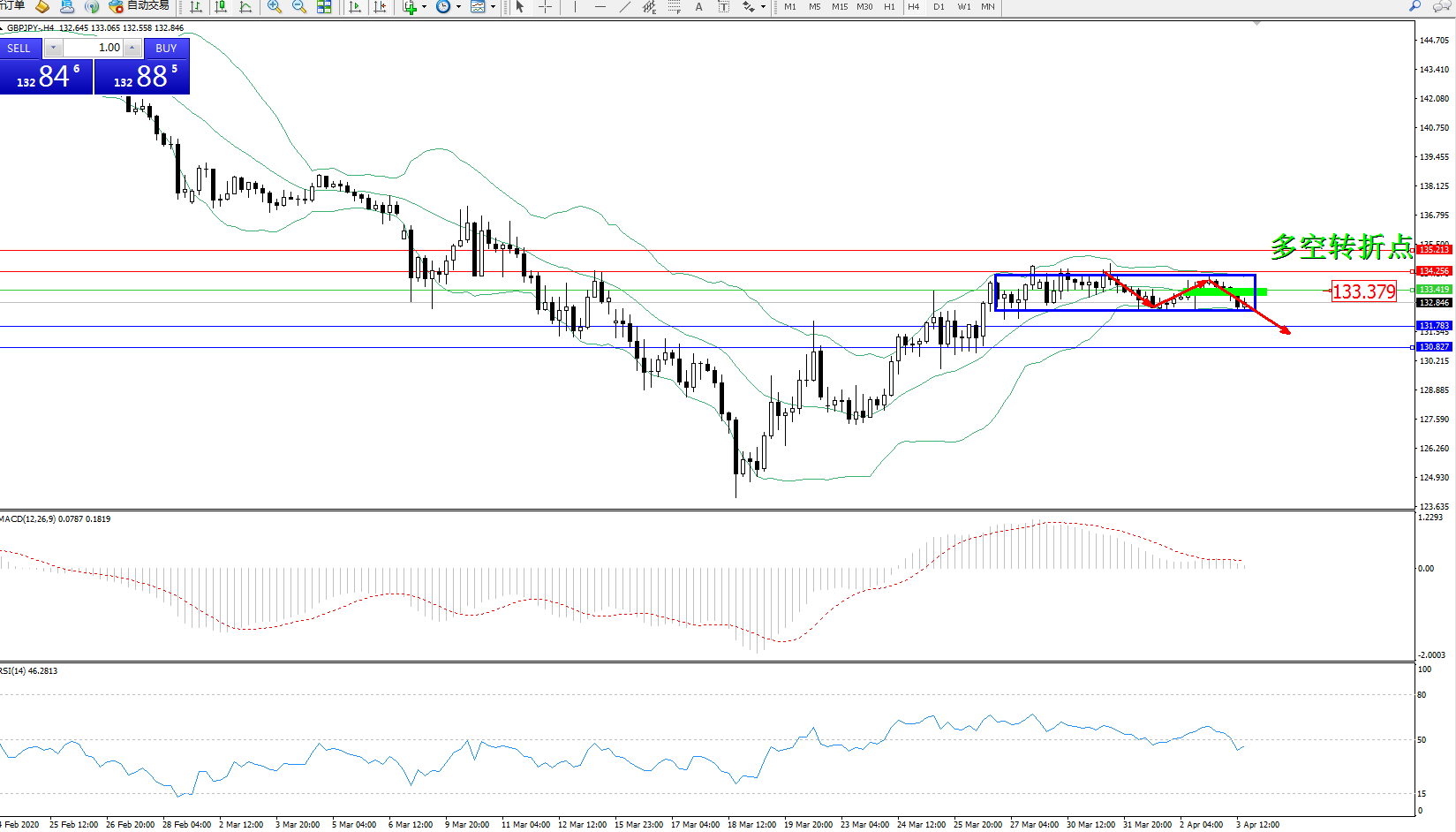 交易策略:133.379下方看跌,目标131.783、130.827