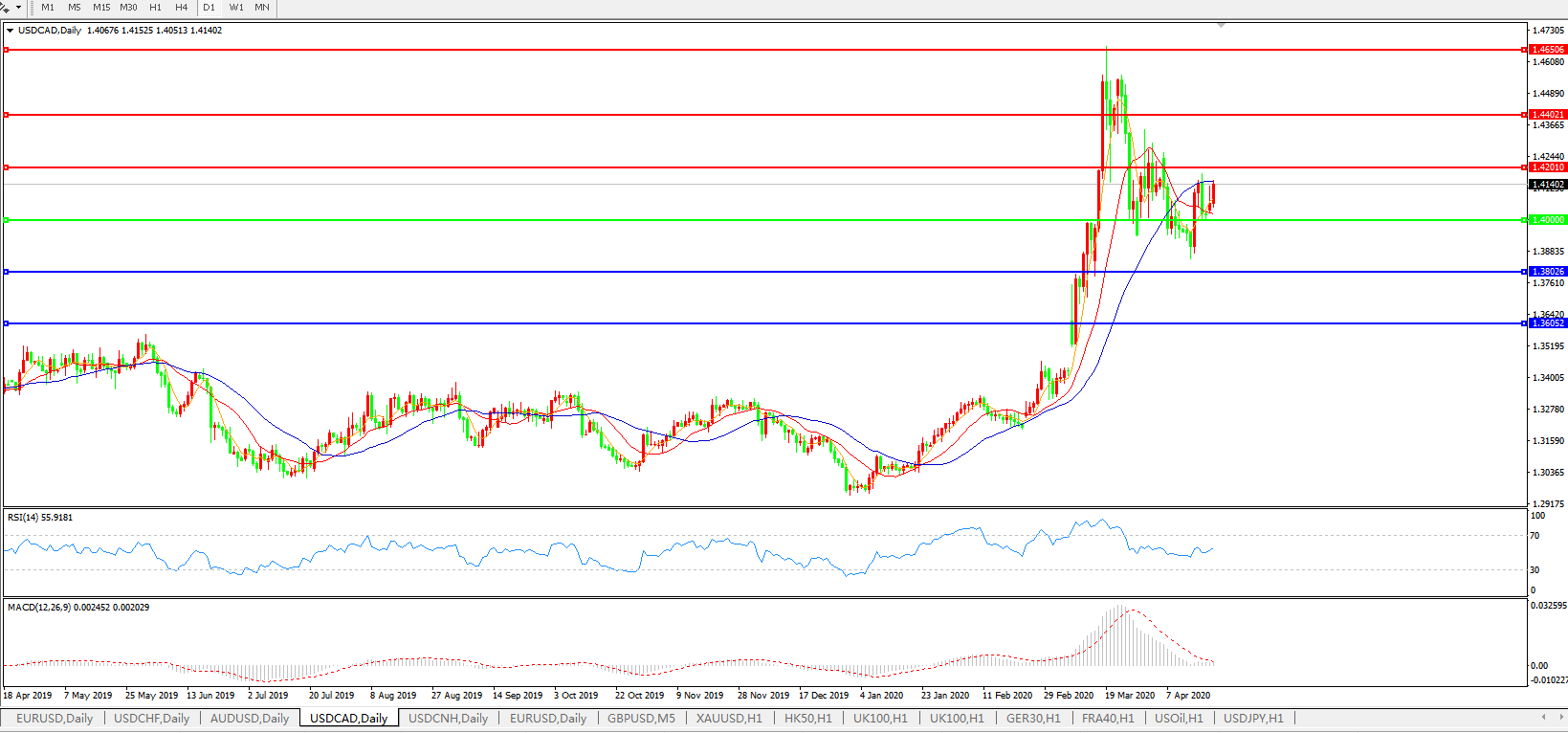 交易策略: 在1.4000之上,看涨,目标价位为1.4200、1.4400