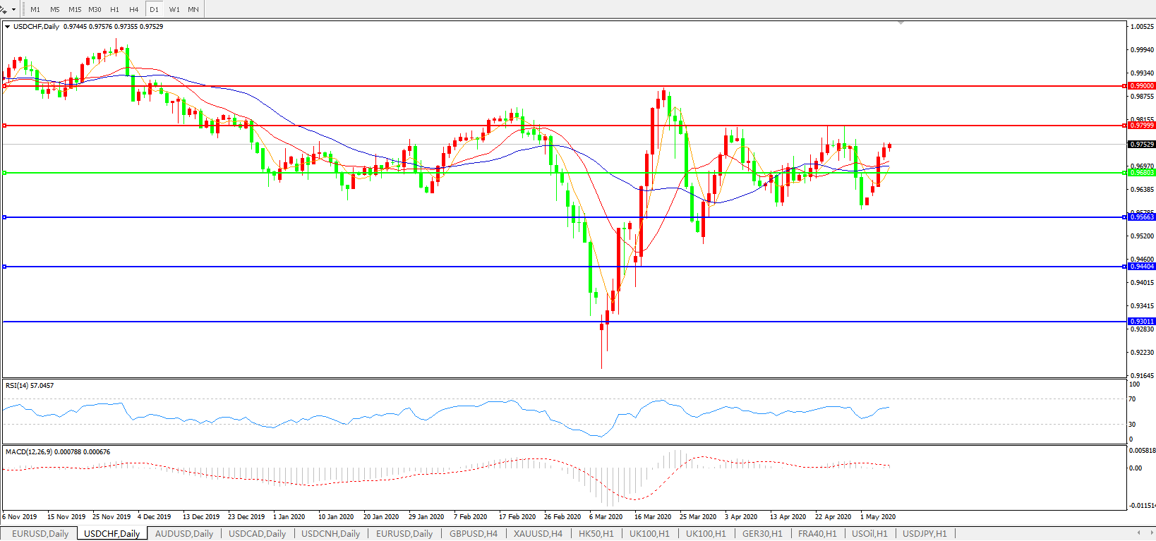 交易策略:0.9680上方看涨,目标0.9800、0.9900
