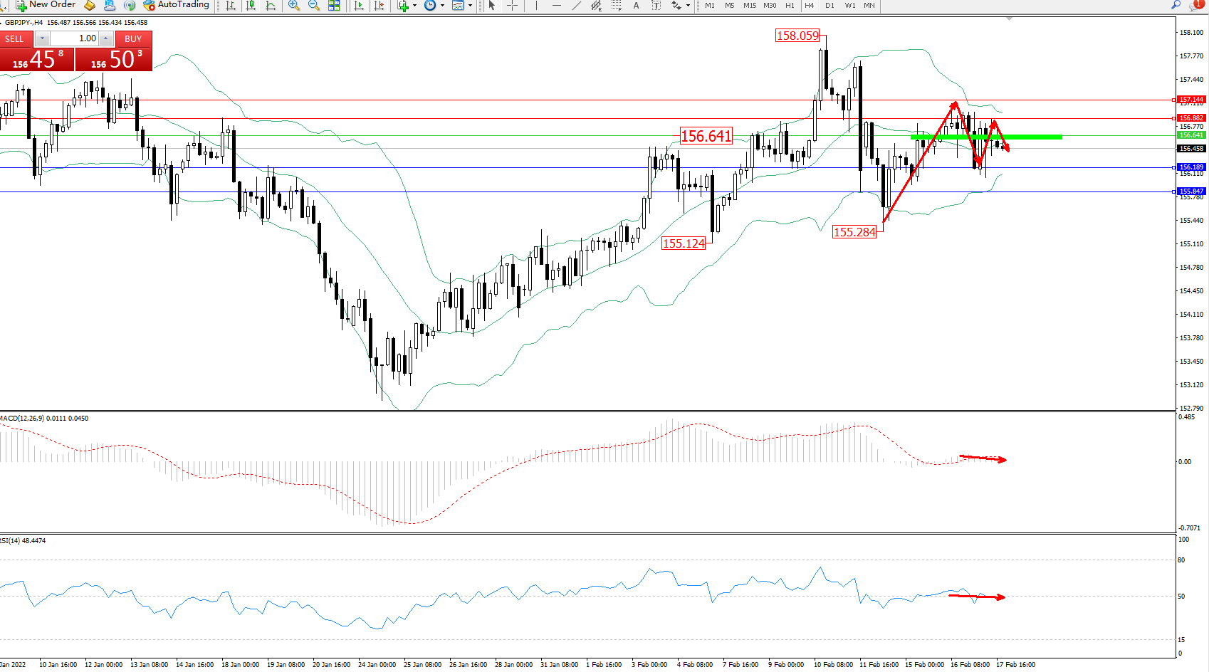 交易策略:156.641下方看跌,目标156.189、155.847