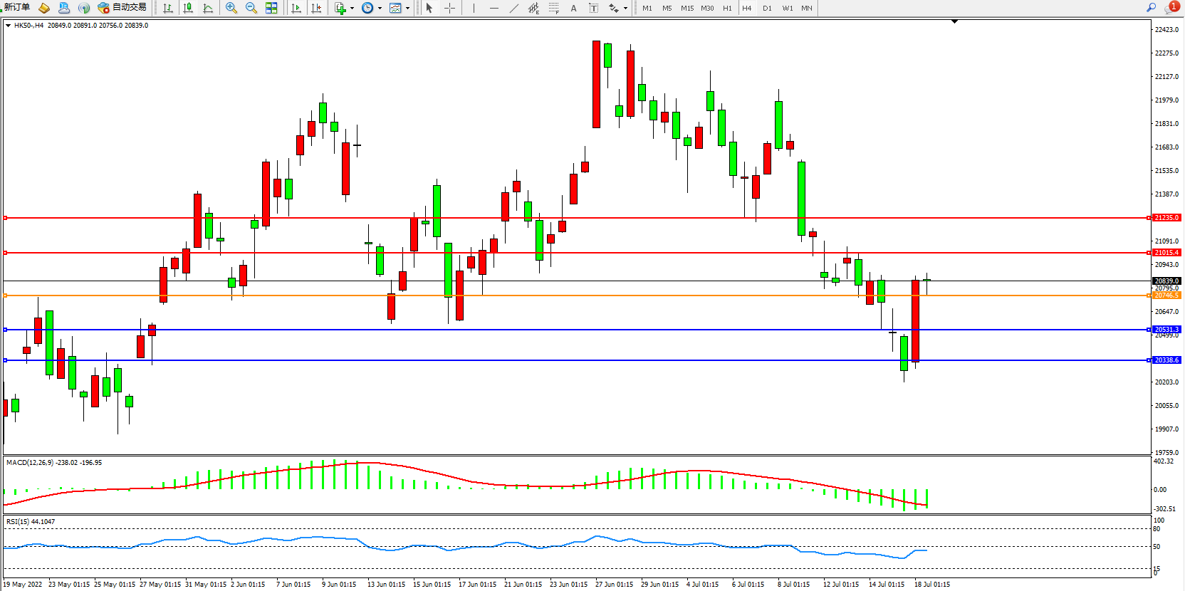 香港恒生指数7月18日(周一)收盘上涨548.46点,涨幅2.7%,报20846.18点;美联储加息预期或降至75基点,港股全天呈上涨行情,止步上周连跌行情。恒生科技指数涨3.03%重上4500点。权重科技股依旧引领大市走强,美团、小米涨约6%,京东、百度、腾讯、阿里巴巴跟涨。