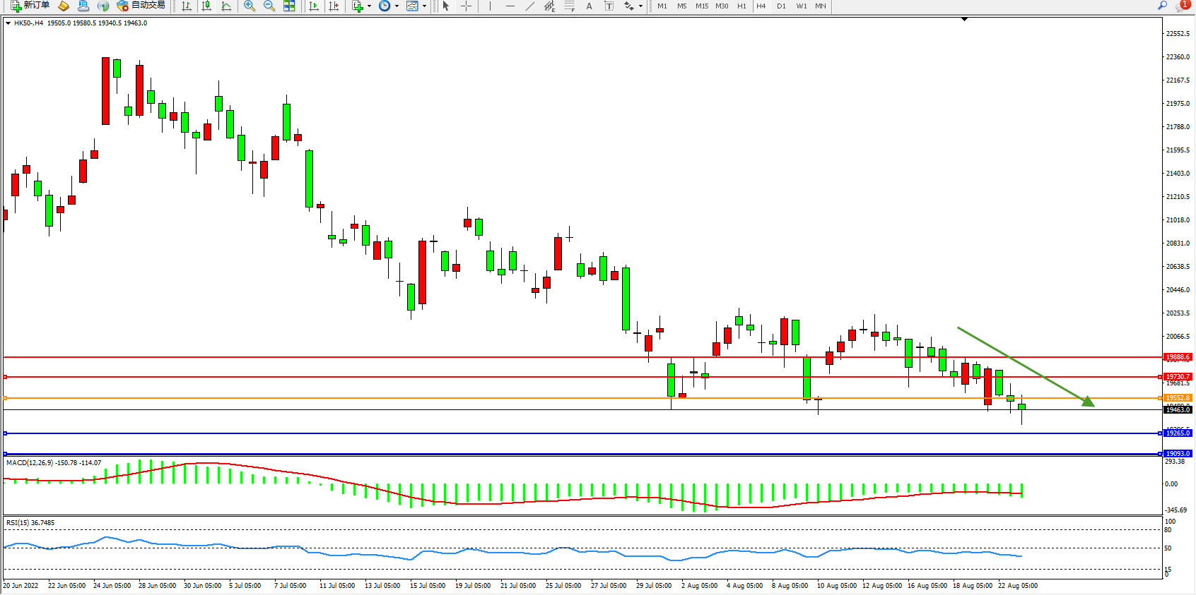 恒指:空头弱势震荡下行 CHINA300  HK50