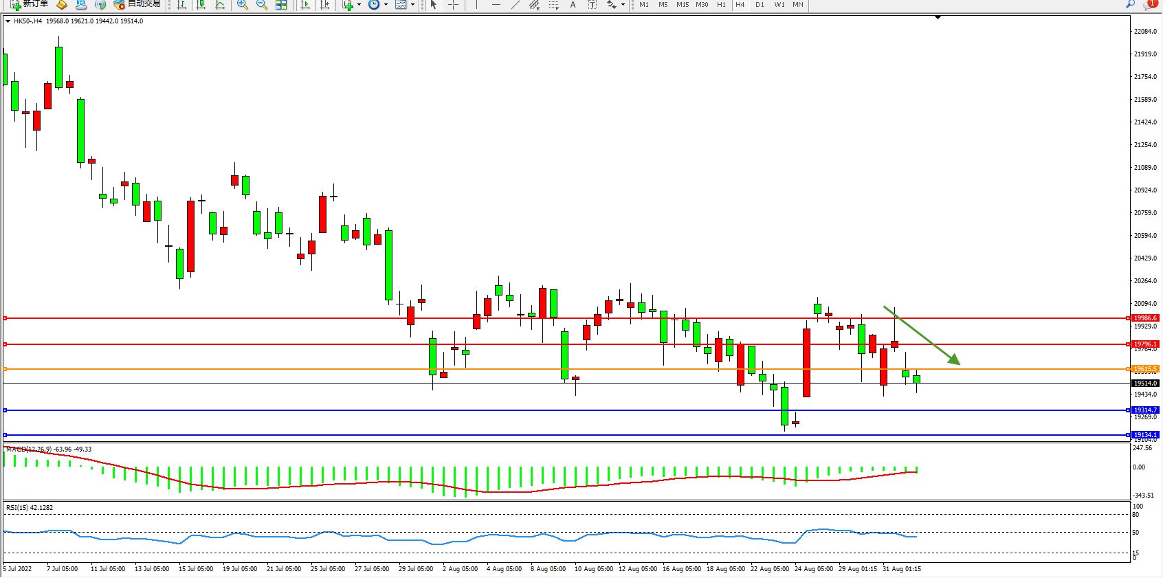 香港恒生指数9月1日(周四)收盘下跌357.08点,跌幅1.79%,报19597.31点;市场情绪表现低迷,港股午后跌幅扩大,三大指数盘中均跌超2%,国指、恒生科技指数分别跌1.79%和1.63%。大型科技股普跌令大市疲弱,国内多地疫情严峻,餐饮股、影视娱乐股、濠赌股、航空股纷纷下挫;南下资金净流入35.24亿港元,大市成交额为1056亿港元。