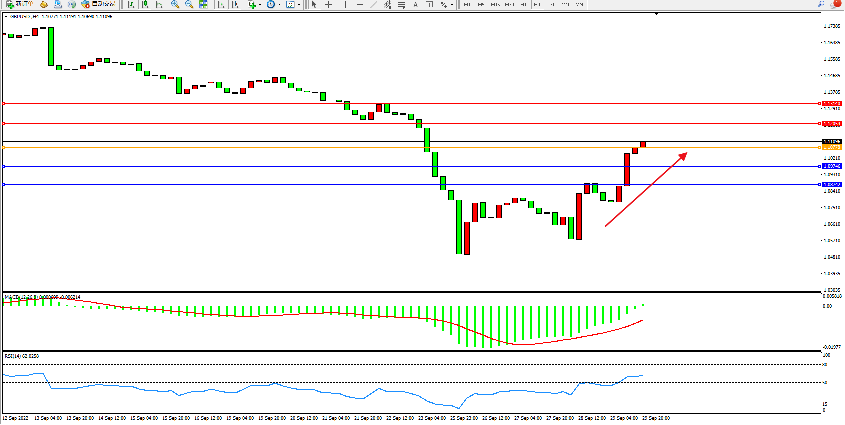 英镑美元GBPUSD ——4小时K线图显示:
