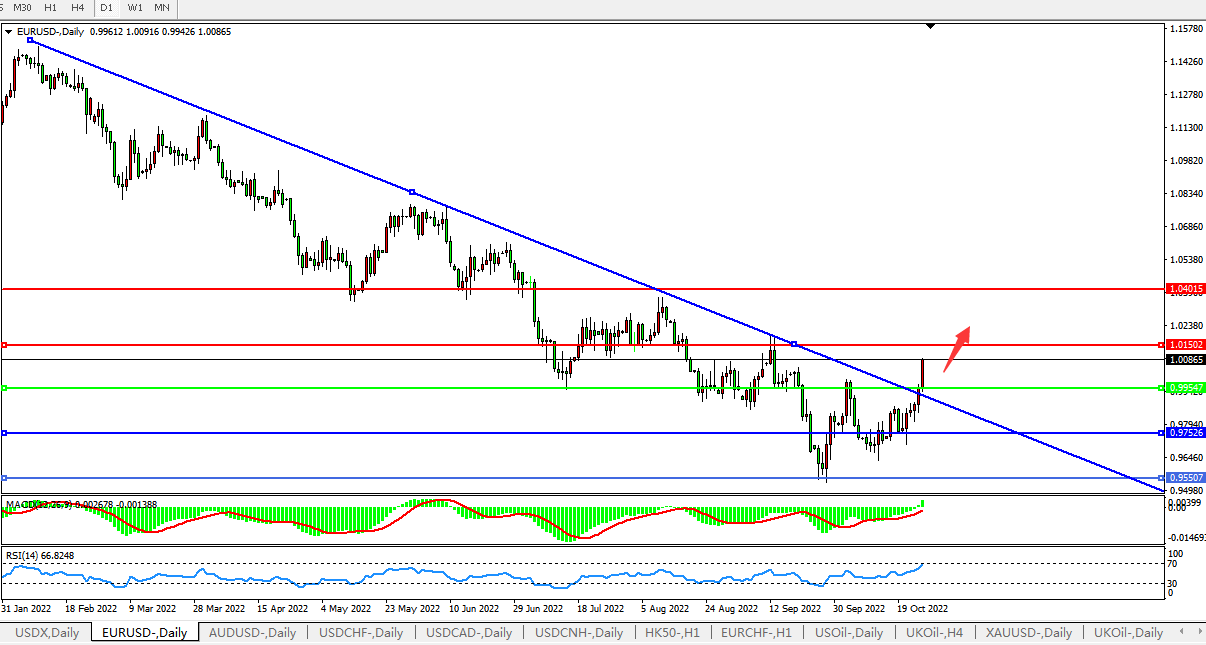 交易策略:0.9950上方看涨,目标1.0150、1.0400