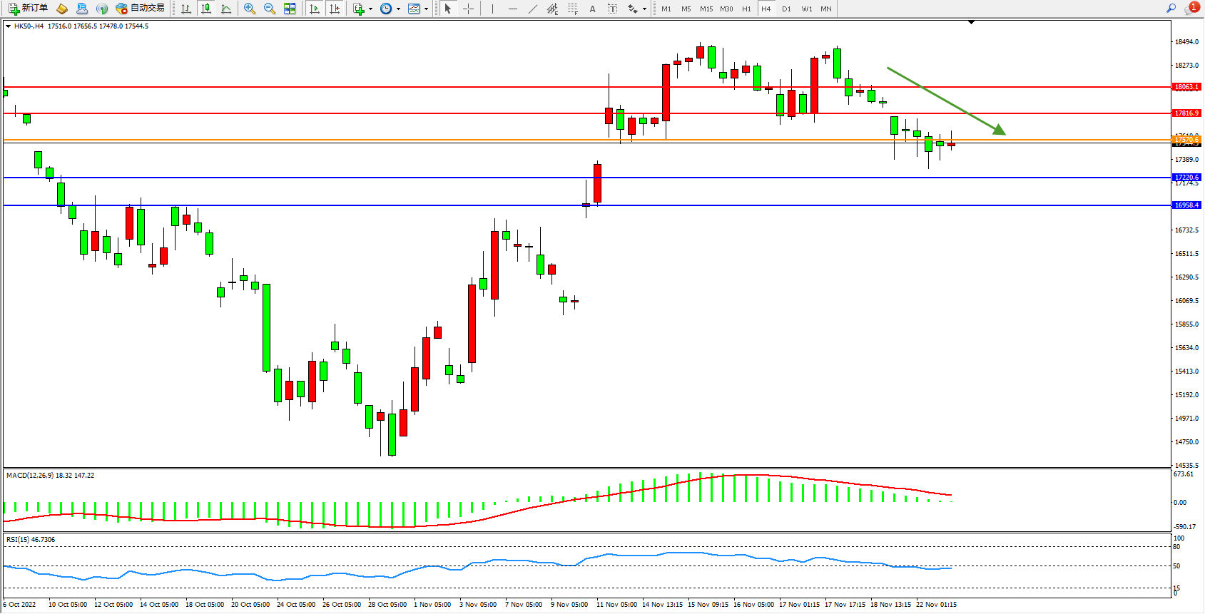 香港恒生指数11月23日(周三)收盘上涨99.4点,涨幅0.57%,报17523.81点;港股三大指数全线上涨,在科技股助力下,恒生科技指数涨幅较佳,最终收涨1.13%,恒指、国指分别涨0.57%和0.74%。南下资金全日净流入18.03亿港元,大市成交额不足千亿港元。新冠相关产品竞争激烈,此前连续大涨的生物医药股全线走低,餐饮、啤酒、体育用品等消费股继续走弱。