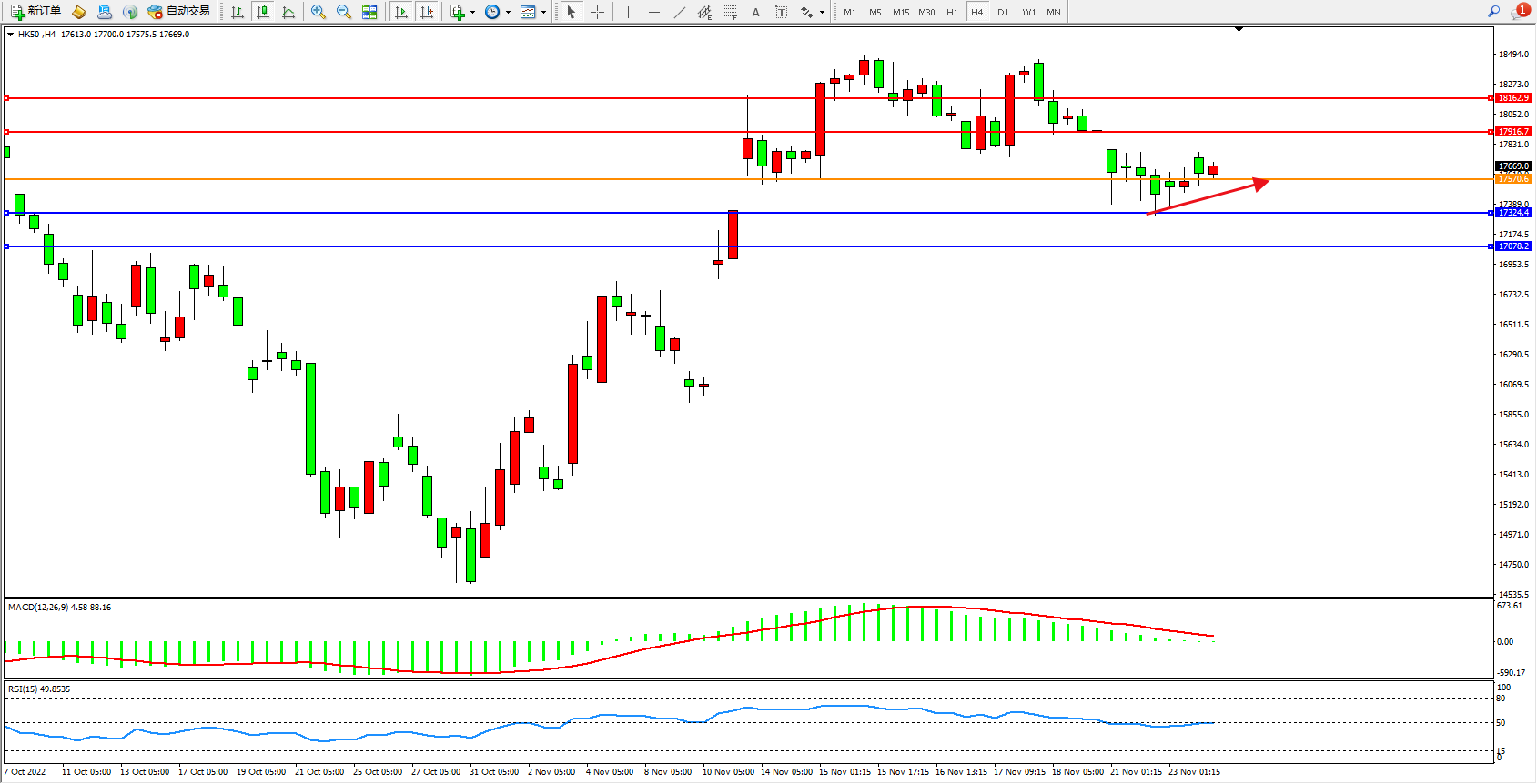 香港恒生指数11月24日(周四)收盘上涨137.09点,涨幅0.78%,报17660.9点;港股三大指数集体收涨,早盘一度转跌午后维持震荡行情,市场情绪稍显谨慎。国指涨0.79%,恒生科技指数涨0.79%。盘面上,权重科技股涨跌各异,网易、百度涨超2%,烟草股、香港银行股、抗疫概念股、生物技术股、光伏太阳能股等股活跃。南下资金全日净流出3.1亿港元,大市成交额861亿港元。