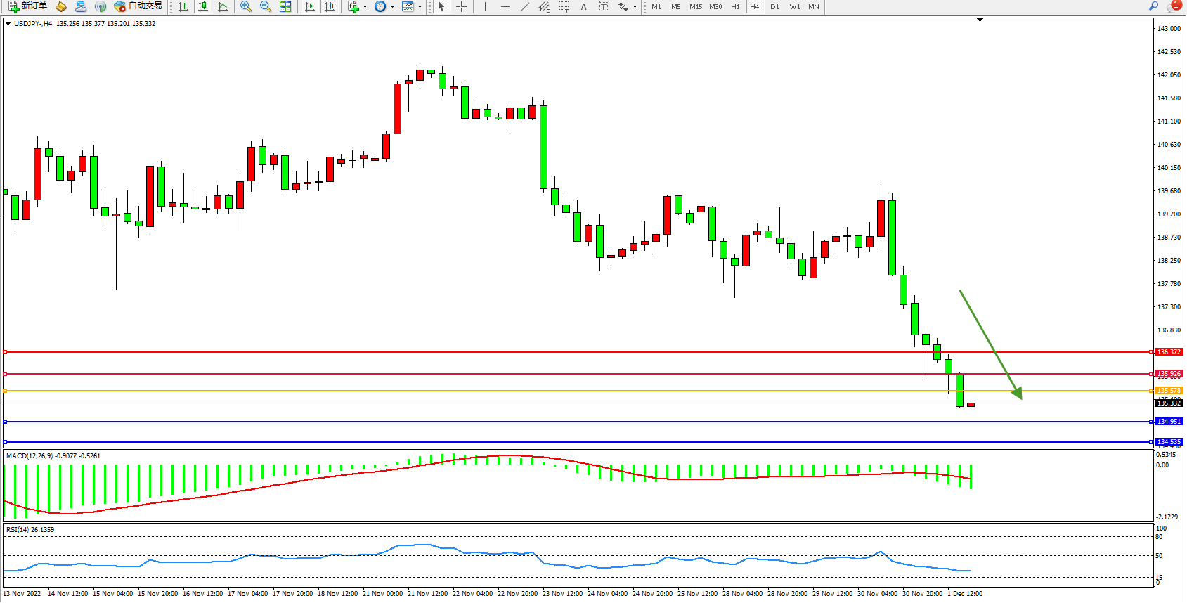 美元兑日圆维持135.332附近至震荡,因美联储放缓收紧政策的前景推低了美国国债收益率。美元兑日可能继续走低,该货币对容易受到美国国债收益率波动的影响。