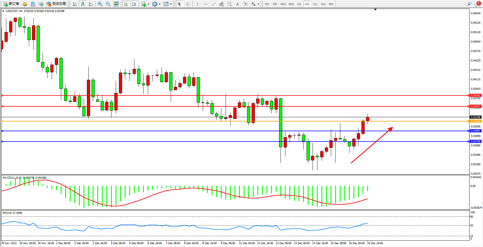 交易策略:0.93207上方看涨,目标0.93527、0.93762