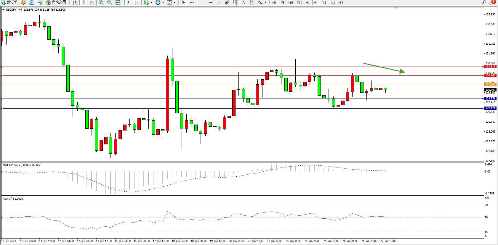 交易策略:130.104下方看跌,目标129.556、129.171