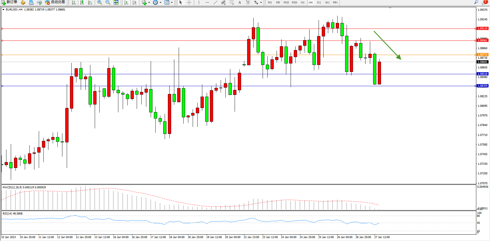 欧元兑美元维持1.08681附近震荡,预计欧洲央行将在2月和3月各加息50个基点,然后暂停加息,不过此后有进一步加息的风险。瑞银对欧洲央行存款利率峰值的官方预测为3%。