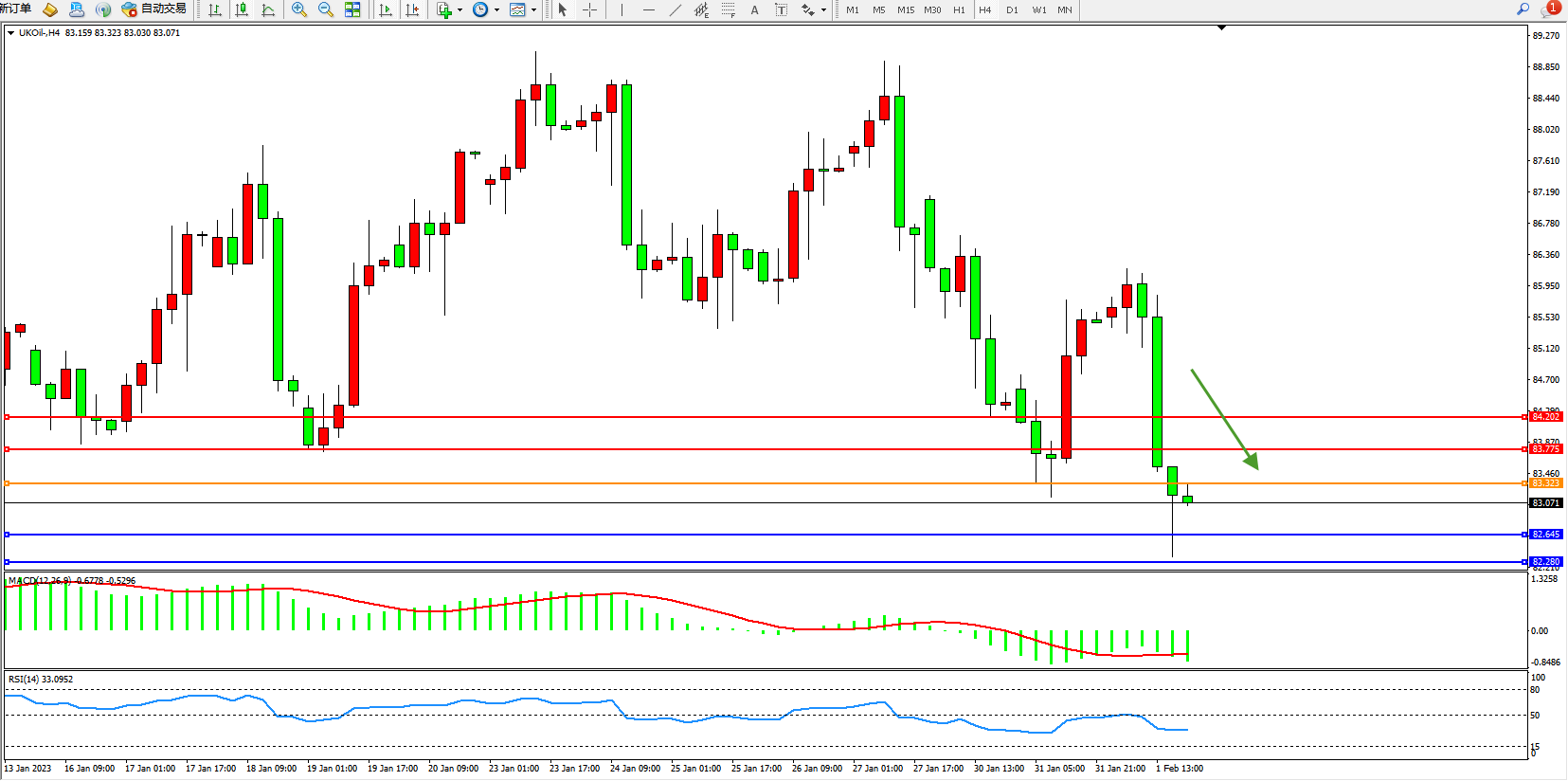 交易策略:83.323下方看跌,目标82.645、82.280