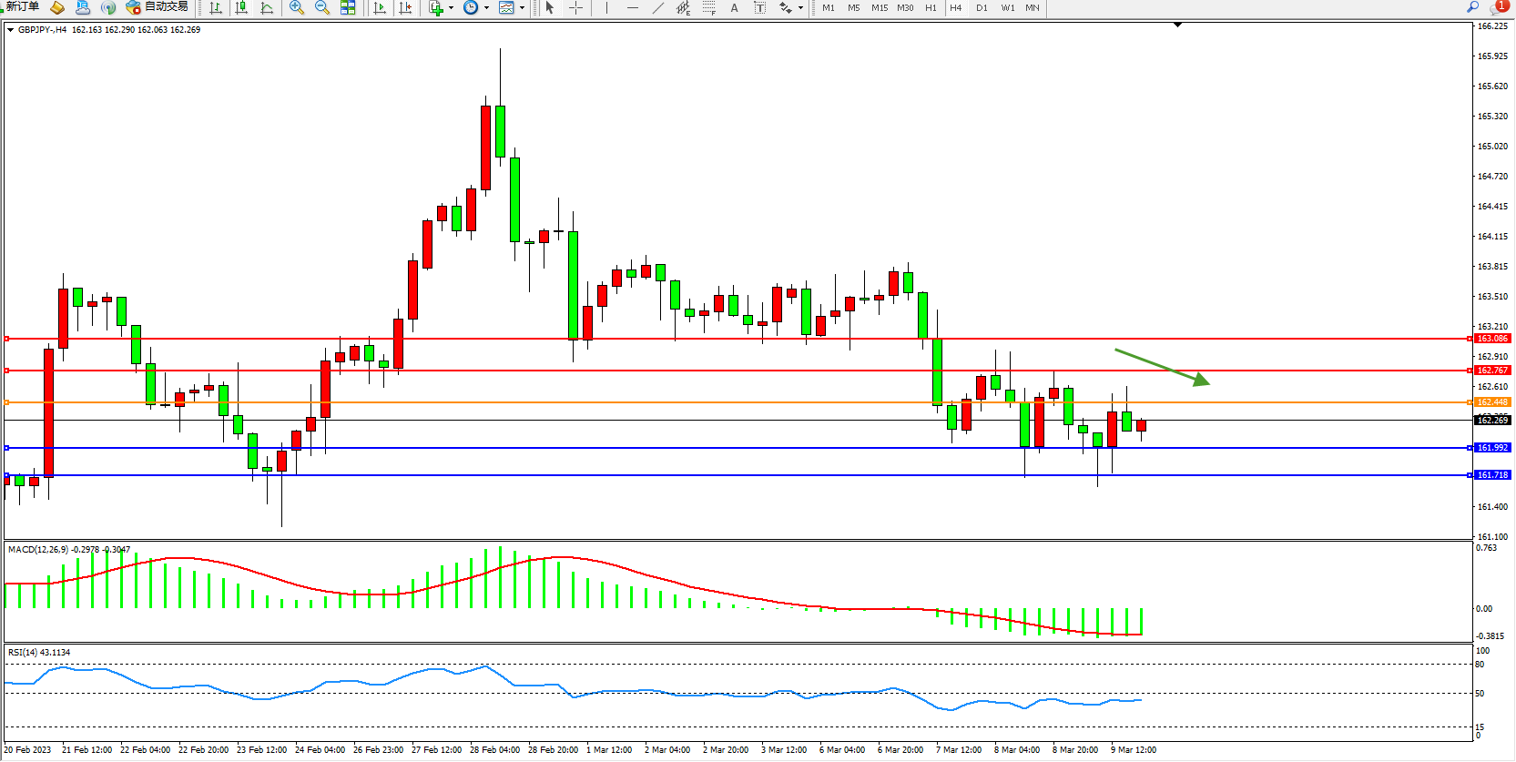 4小时图看:空头动力维持震荡下移,短期有继续向下移动态势,短期下行情绪依旧,MACD指标处于空头区域维持整理,RSI指标处于50均衡线下侧徘徊;