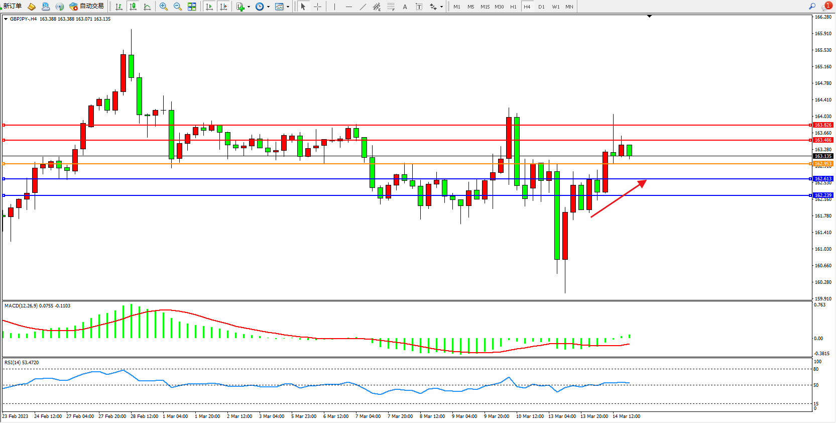 4小时图看:多头动力维持震荡上扬,短期看涨情绪持续,市场多头不断向上移动中,MACD指标处于0轴线上側徘徊,RSI指标处于50均衡线上側整理;