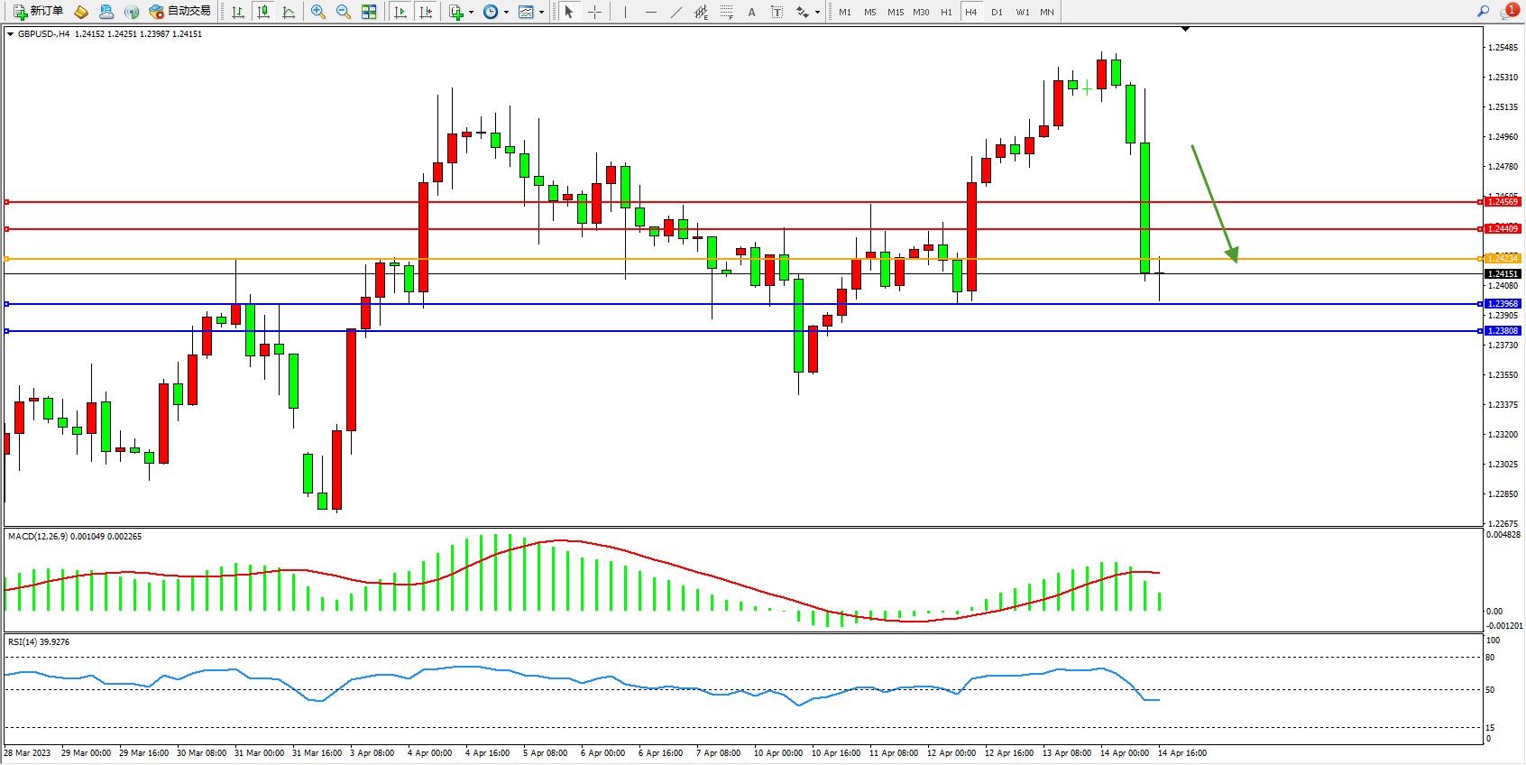 交易策略:1.24234下方看跌,目标1.23968  1.23808
