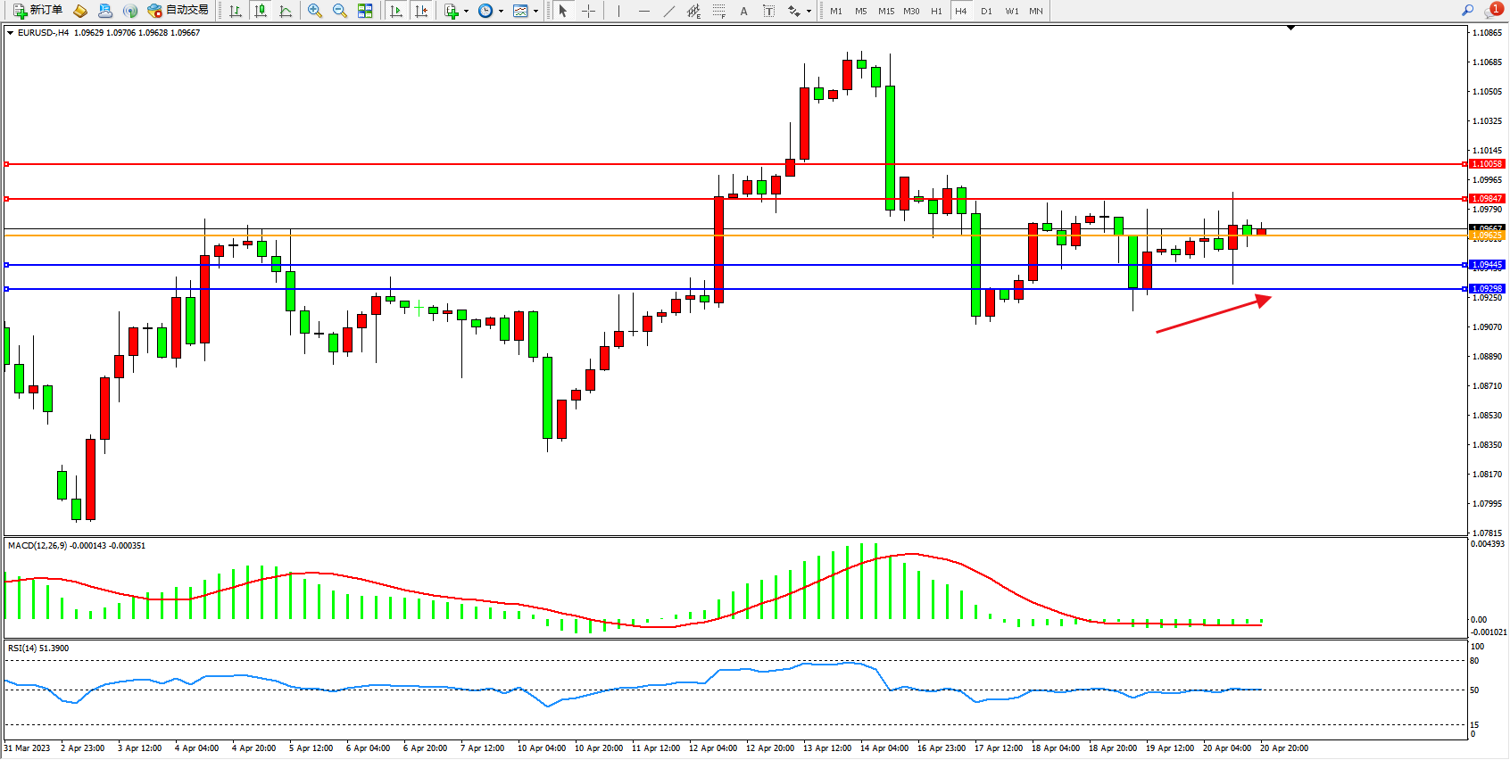 交易策略:1.09667上方看涨,目标1.09847  1.10058