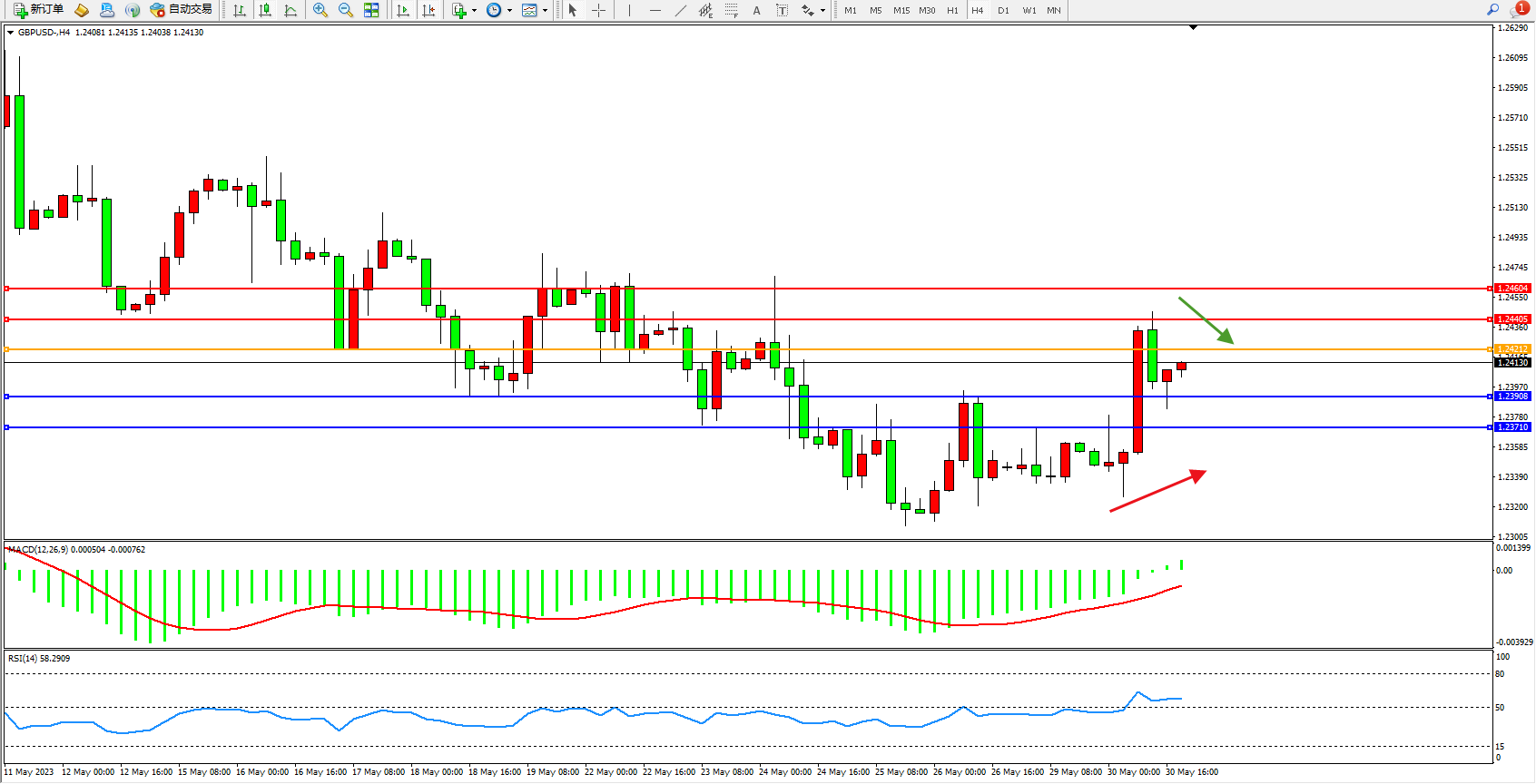 备选策略:1.24212上方看涨,目标1.24405 1.24604