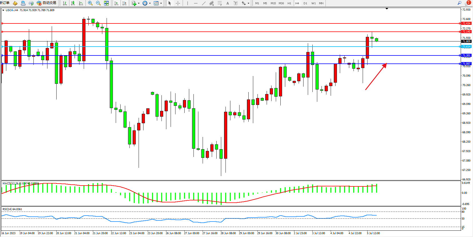 交易策略:71.614上方看涨,目标72.140 72.434