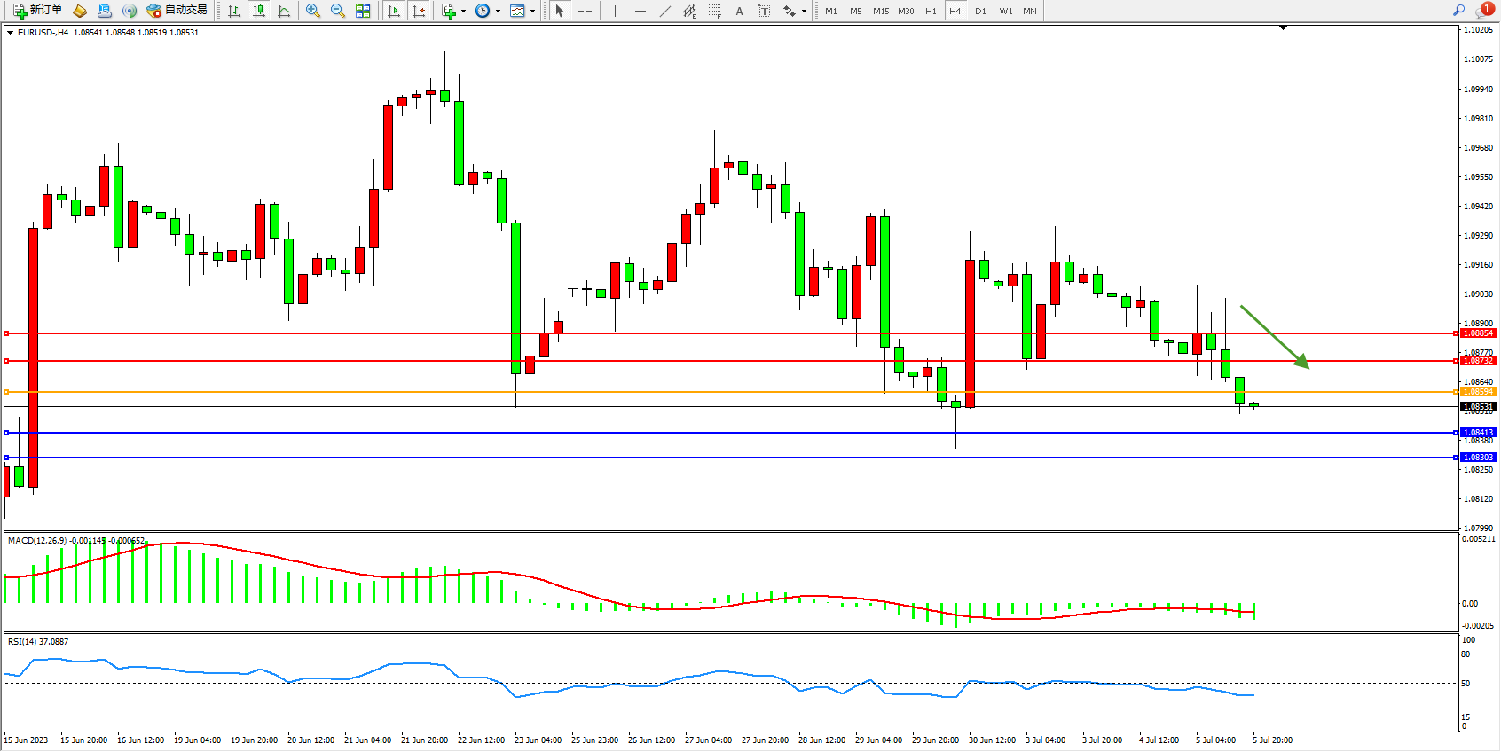 交易策略:1.08594下方看跌,目标1.08413  1.08303