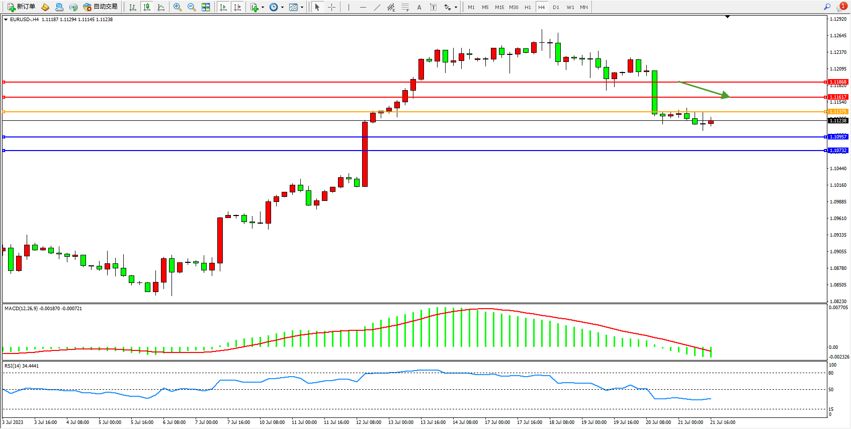交易策略:1.11375下方看跌,目标1.10957 1.10732