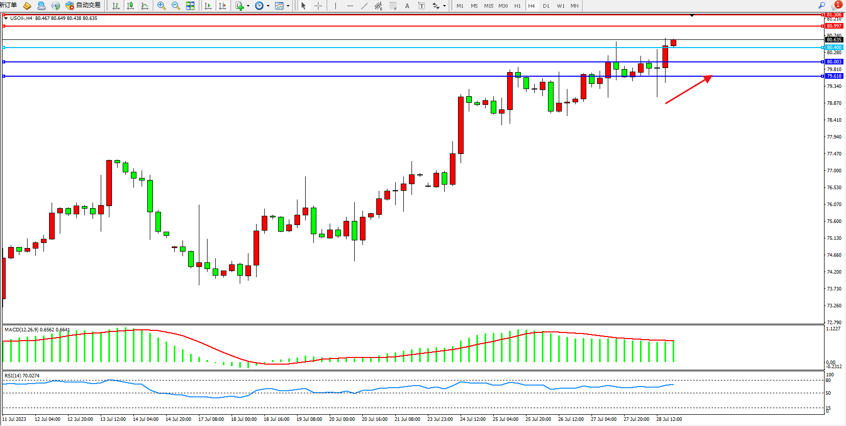 原油维持80.635附近震荡,市场关注8月4日石油输出国组织及其盟国(OPEC+)举行的下一次市场监测委员会会议,沙特可能宣布进一步延长100万桶/日的自愿减产至9月份。