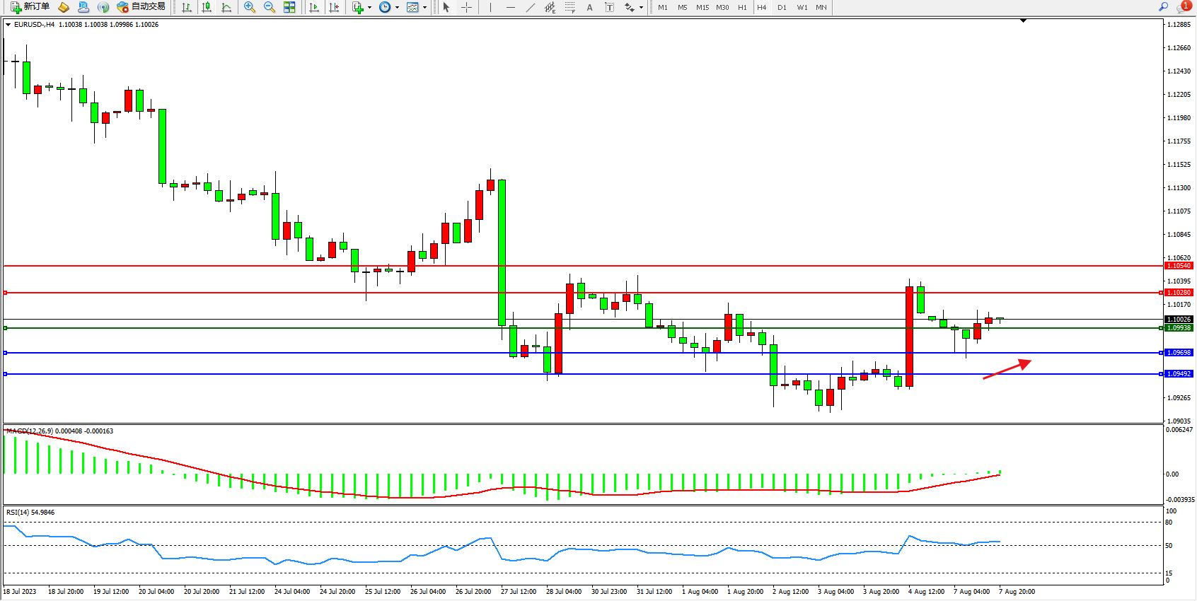 交易策略:1.09938上方看涨,目标1.10280  1.10540