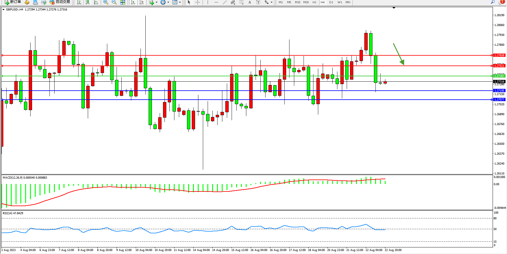 交易策略:1.27387下方看跌,目标1.27195 1.27077