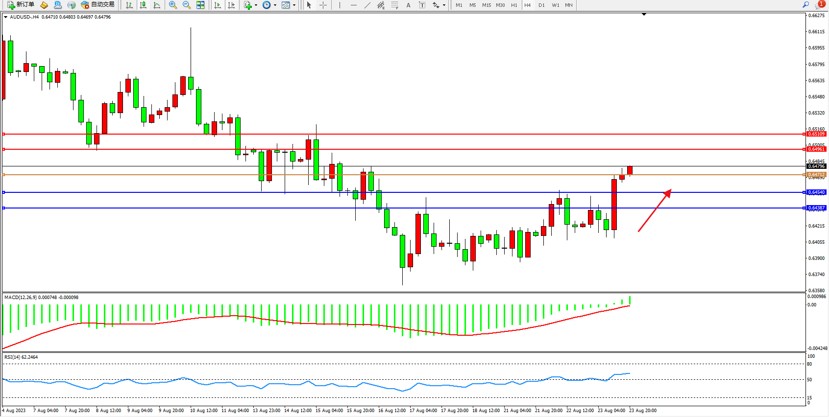 交易策略:0.64712上方看涨,目标0.64961 0.65109