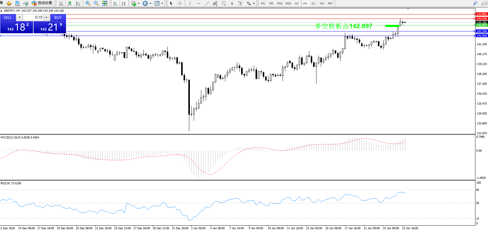 交易策略:142.897上方看涨,目标143.536143.962