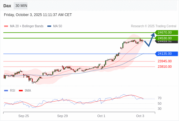 在 24135.00 之上,看涨,目标价位为 24530.00 ,然后为 24670.00 。