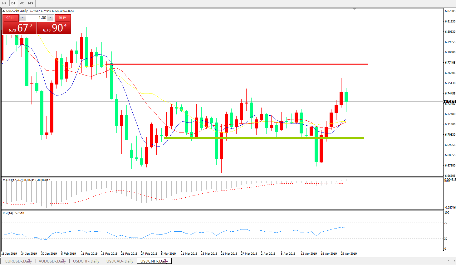 备选策略: 6.6990之下,看跌,目标价位为6.6730,然后为6.6325