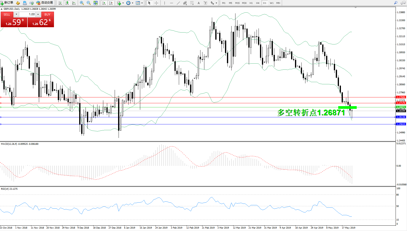 交易策略:1.26871下方看跌,目标1.26136、1.25615