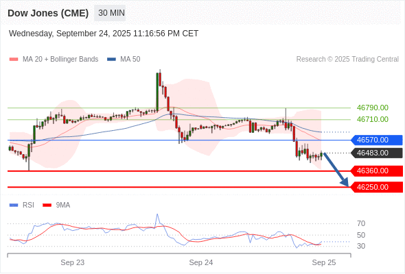在 46570.00 之下,看跌,目标价位为 46360.00 ,然后为 46250.00 。