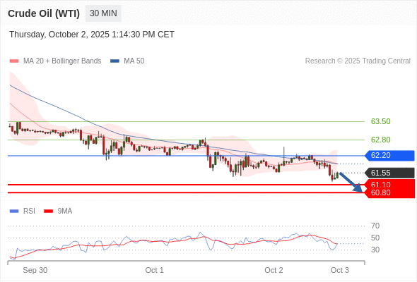 在 62.20 之下,看跌,目标价位为 61.10 ,然后为 60.80 。