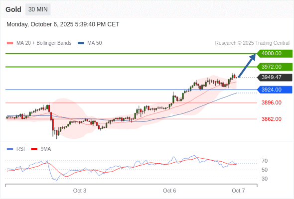 在 3924.00 之上,看涨,目标价位为 3972.00 ,然后为 4000.00 。